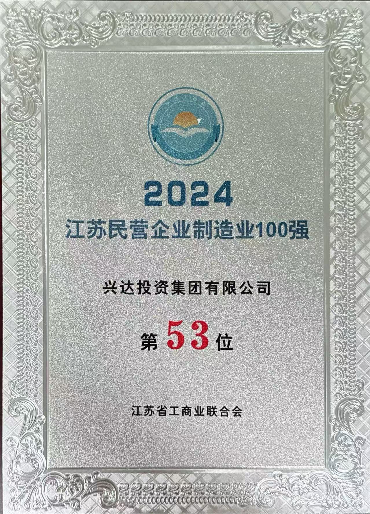 2024年江蘇民營企業(yè)制造100強興達排名53